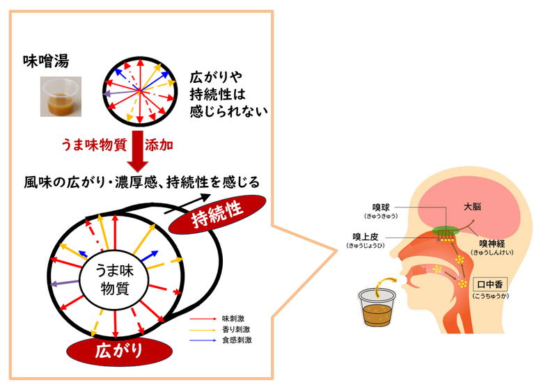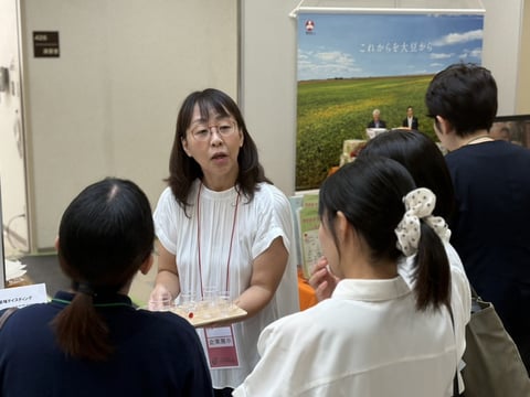 At this year’s booth, we were able to provide visitors with the opportunity to experience the “enhancement effect of umami substances on Koku sensation” using reduced-salt miso-dissolved broth. They compared two versions: one with umami substances* added and one without, both based on miso-dissolved broth containing 0.5% salt equivalent (about 40% less salt than typical miso soup). Participants expressed surprise and showed a look of understanding at the difference in taste. Afterwards, lively discussions were held on the enhancement effect of umami substances, providing an opportunity for visitors to gain a deeper understanding.
