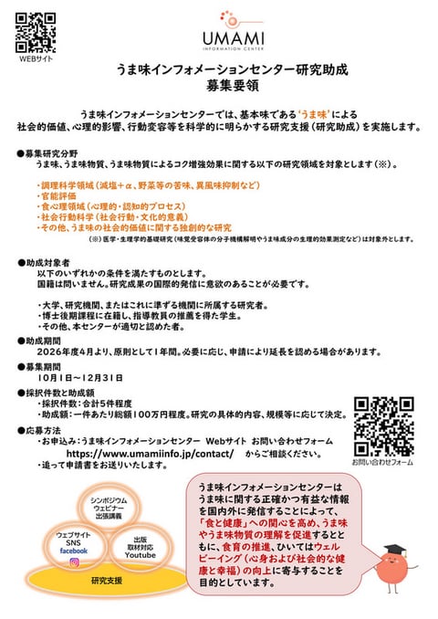 In addition, we announced the launch of a research grant program starting in April 2026 to scientifically clarify the social value, psychological impact, and behavioral changes associated with the basic taste “umami” (application period: October 1–December 31). We distributed flyers and provided explanations to faculty members and researchers, which attracted significant interest.