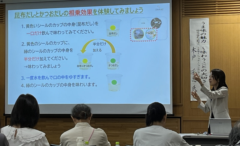 The lecturer was UIC Director Yasue Kido. The session offered participants an opportunity to learn about umami while sampling dishes, providing practical tips for incorporating it into their daily diet.